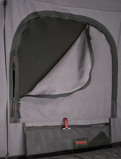 A továbbfejlesztett cipzárak és a továbbfejlesztett ablak kialakítás lehetővé teszi, hogy a vászon- és hálós ablakokat egyszerre nyissa ki. A külső canopy is funkció vakok.