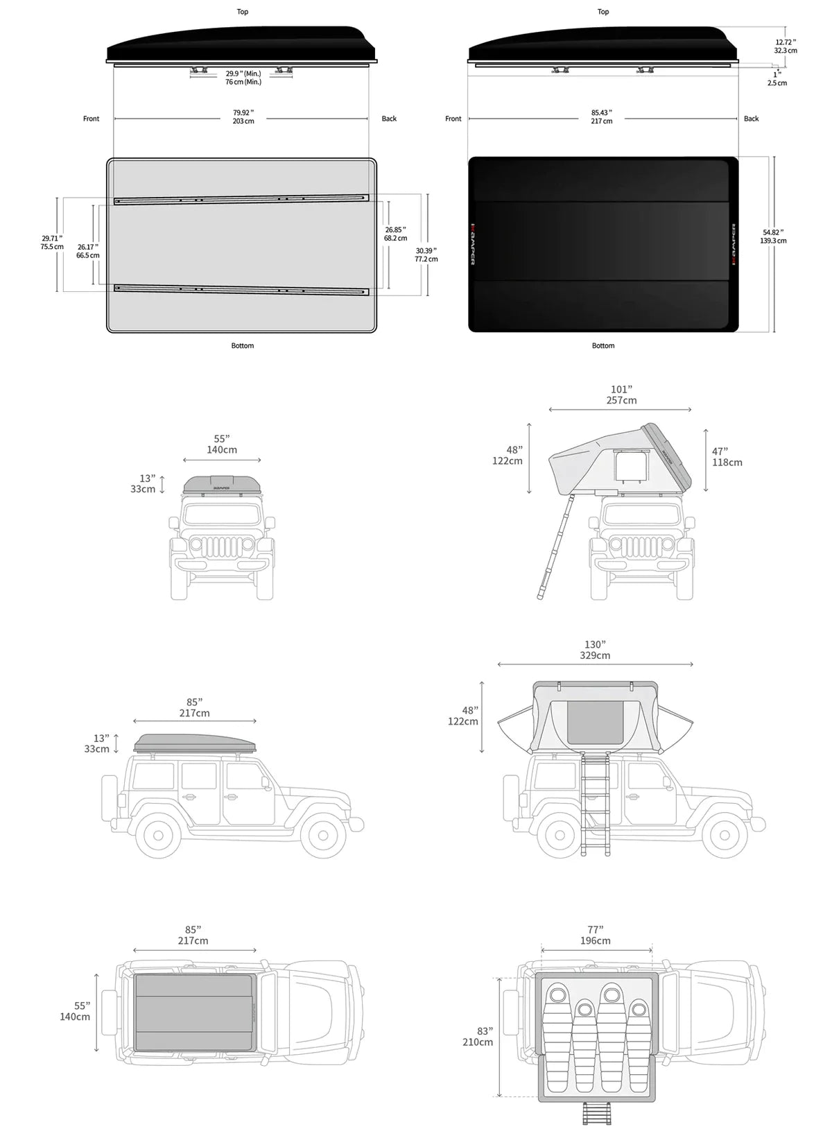Az alumínium padlólemez kihajtható, hogy egy king-size méretű lábtér legyen. Nem fog találni más olyan kemény héjú tetősátrat, amely ilyen nagyvonalú és kényelmes, mint ez.