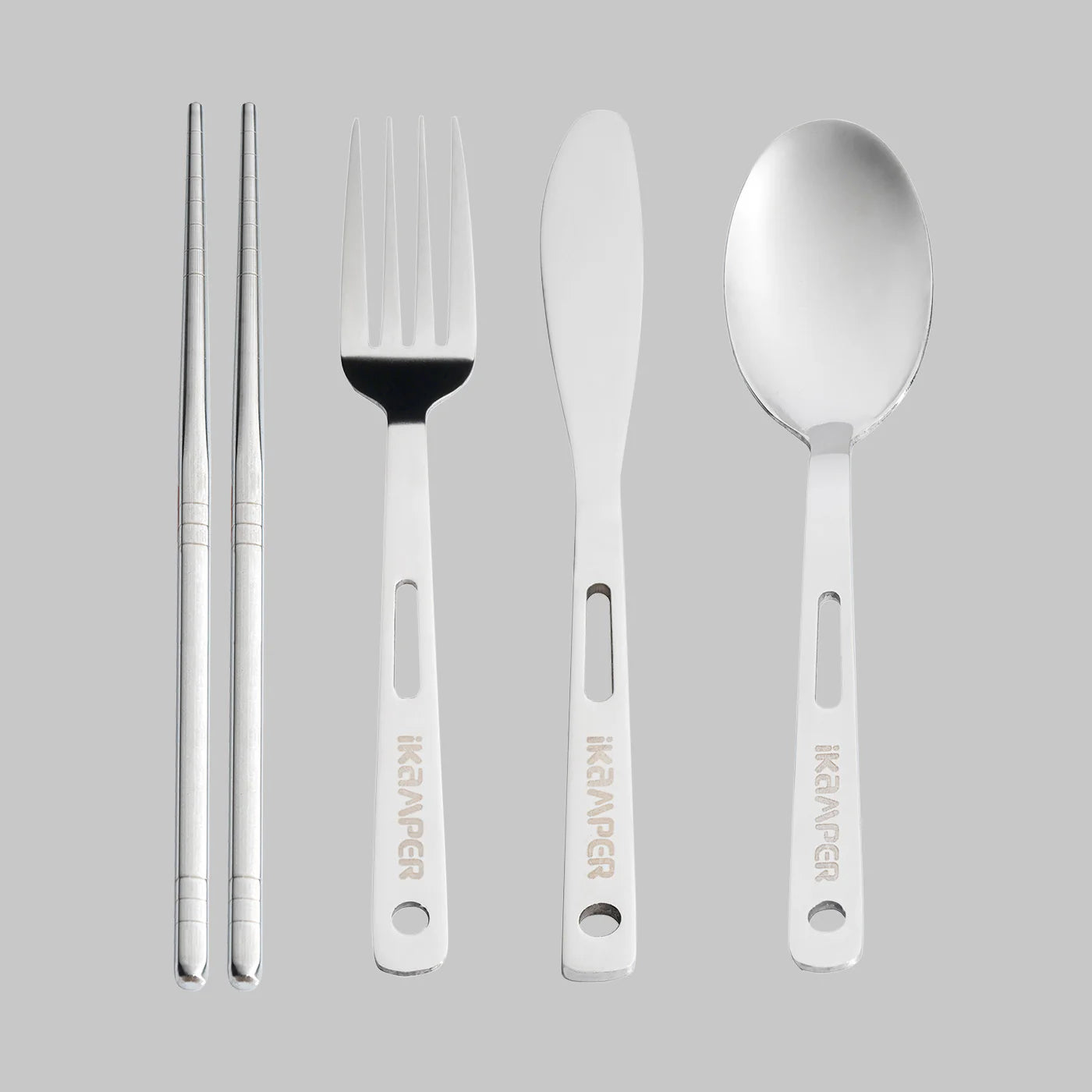 A Kemping evőeszköz készlet a tökéletes megoldás szabadtéri étkezésekhez és mindennapi használatra. Ez a 13 darabos rozsdamentes acél készlet négy főre elegendő felszerelést tartalmaz – villákat, késeket, kanalakat és egy pár evőpálcikát, így sokféle módon használható. Tartósságra és kényelemre tervezve, az evőeszközök mosogatógépben moshatók, rozsdamentesek, és hosszú ideig megőrzik hibátlan állapotukat.